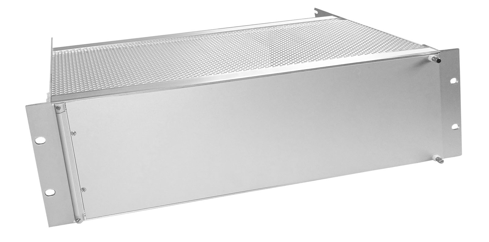 Die Baugruppenbträger sind gefertigt aus Aluminium Blechteilen und Profilen. Für die Aufnahme von Kartenführungen, oder Einbauten sind die Profile gelocht im Raster 5,08 mm. Vordere Querprofile sind eloxiert, die anderen Teile passiviert und somit elektrisch leitfähig.
