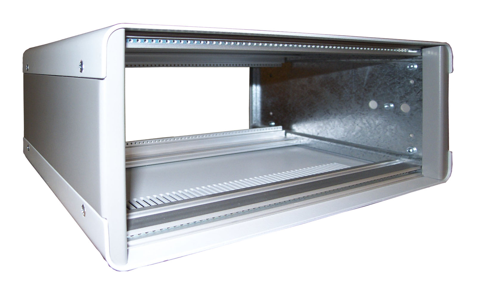 Tischgehäuse einfacher Bauart mit besonders interessantem Preis-/Leistungsverhältnis. Geeignet sowohl für normgerechte Einbauten nach DIN 41 494 als auch für individuelle Aufbauten.