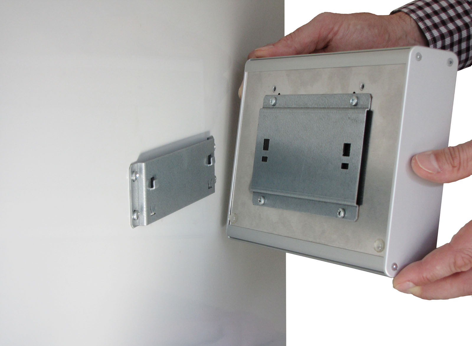 Kompakte Gehäuse für Desktop- oder Wandmontage.